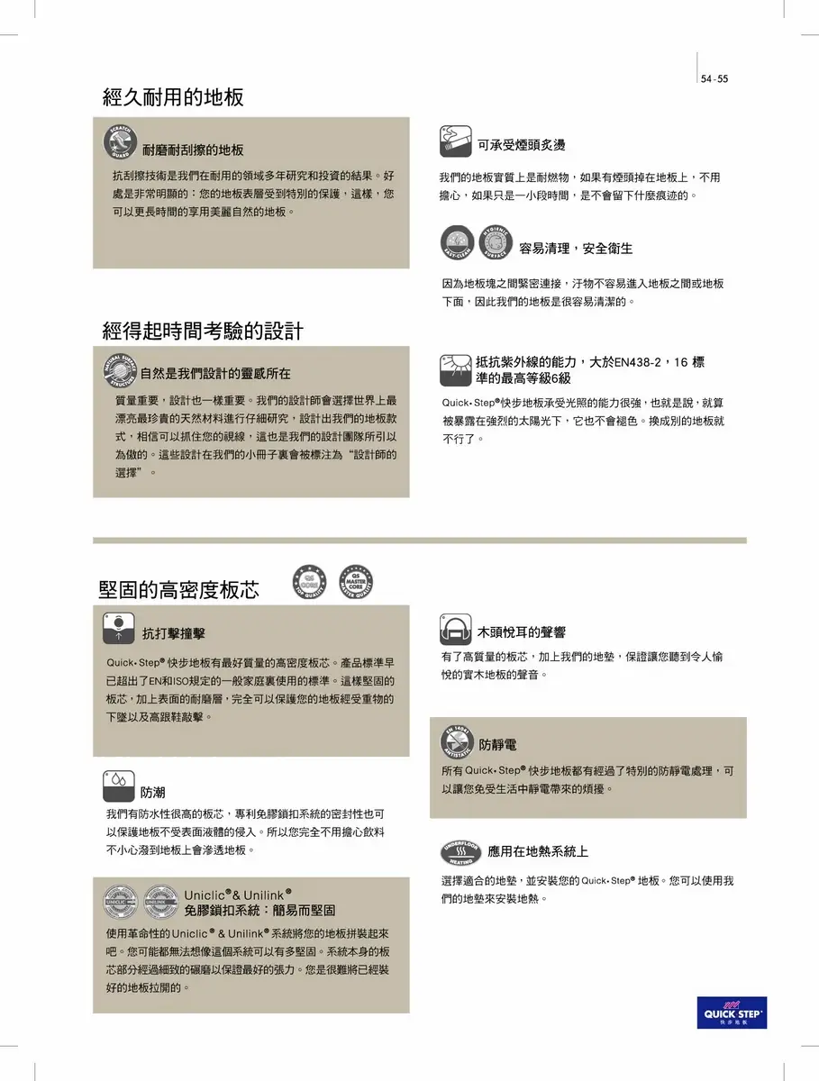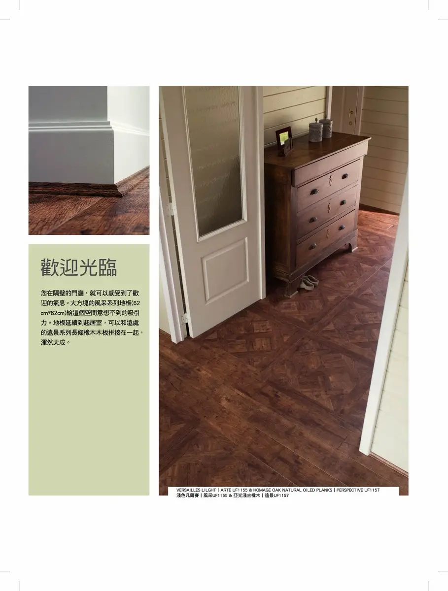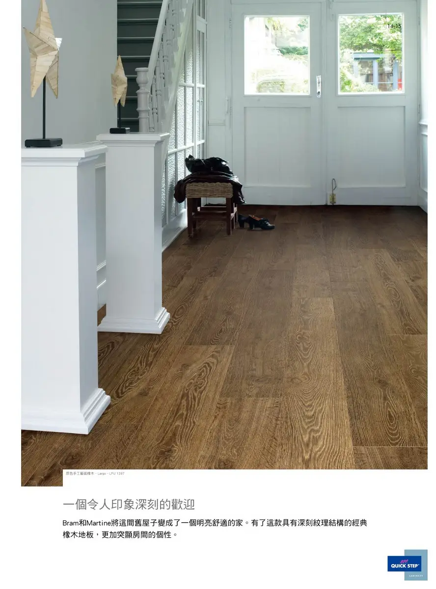 DOWNLOADー 2024.7.27 ー2023QS型錄強化複合地板系列提供眾多色彩和質地忠於自然的地板。我們不斷在追求創意與新穎的組合。從尋找完美的板材結構到仔細平衡色彩和 V 形槽:我們提供能符合 每個人品味的多種美型強化複合地板系列,讓您能打造真正感覺到溫暖且賓至如歸的居家環境。