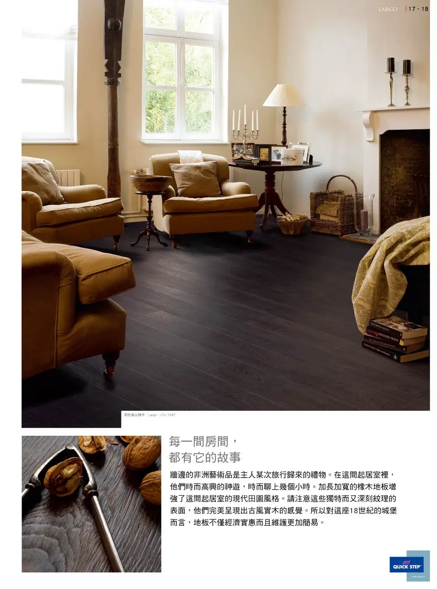 DOWNLOADー 2024.7.27 ー2023QS型錄強化複合地板系列提供眾多色彩和質地忠於自然的地板。我們不斷在追求創意與新穎的組合。從尋找完美的板材結構到仔細平衡色彩和 V 形槽:我們提供能符合 每個人品味的多種美型強化複合地板系列,讓您能打造真正感覺到溫暖且賓至如歸的居家環境。